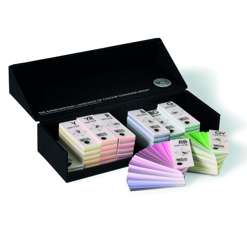 Jede Probe kann herausgeklappt werden, um verschiedene Farbkombinationen beurteilen zu können. Der NCS Block ist ein hervorragendes Hilfsmittel zur Bestandsaufnahme und Identifizierung von Farben unterschiedlicher Materialien, da man die ganze Farbprobe auf die Fläche legen kann. Den NCS Block gibt es nach Bunttönen oder Nuancen sortiert. Wer mit Mustern und Kontrasten arbeitet, zieht meist die Nuancierungen vor. Insgesamt sind 1950 NCS-Farbmuster in 9 Blöcken enthalten.. Farbmusterformat: 35 x 104mm